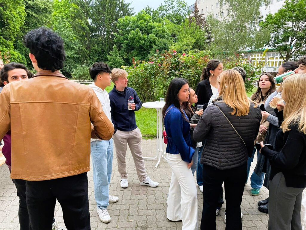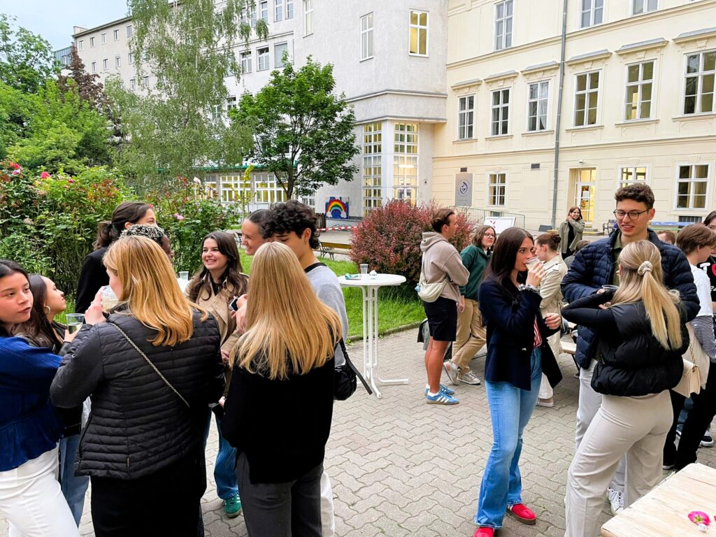 Maturajahrgänge von 2006 bis 2023 – Der erste Spritzerstand des jungen Absolvent*innen-Teams „Sacré-Coeur-Connect“ war mit rund 100 Gästen ein voller Erfolg! Am 16.05.2024 sahen sich alte Bekannte in den Innenhöfen des Gymnasiums Sacré Coeur Wien wieder, plauderten über alte Schulzeiten, vernetzten sich neu und verbrachten bei Spritzer, Bier und Snacks einen frühsommerlichen Abend miteinander.